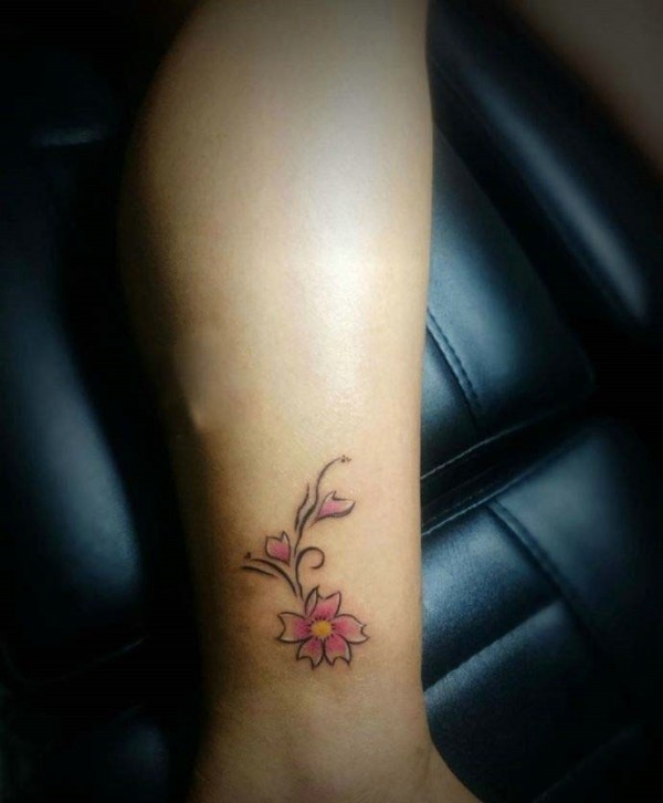 清新小桃花脚踝纹身_脚部纹身图案大全_纹身图吧