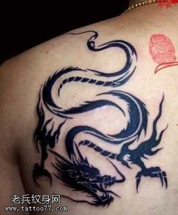 龙纹身手稿_一组老传统黑灰龙手稿纹身图案
