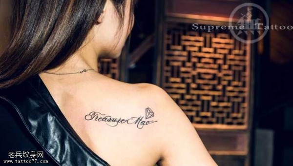 肩部英文钻石纹身图案