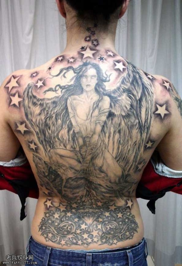 满背天使战士纹身图案