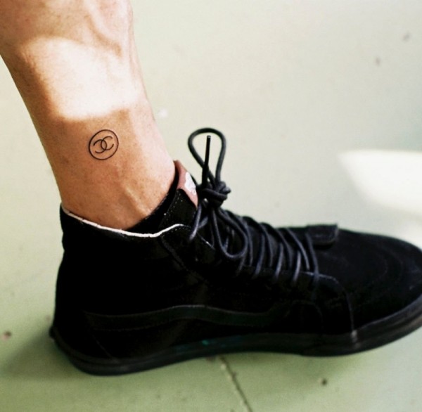 机器纹身师刚刚完成的纹身图案作品,还滴着黑墨汁