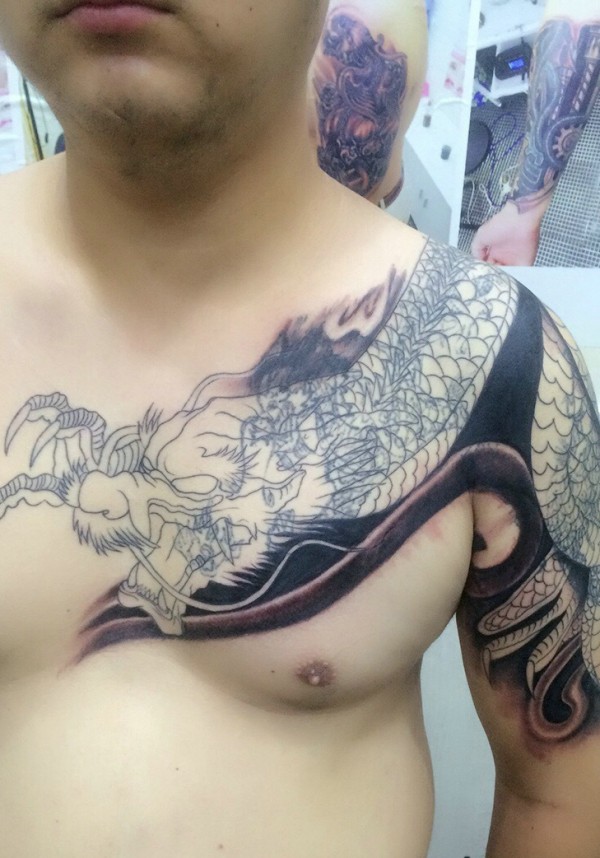 日式手彫刺青作品—半甲龙很感谢客户认可手彫刺青,手彫是日本纹身的手工雕刻技术,时间可以追溯到日本17世纪的江户时代。19世纪,手彫技术被日本黑帮挪用,被用作入会仪式,象征着从此就是江湖中人。在日式传统