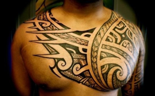 男性背部帅气的部落图腾纹身图案