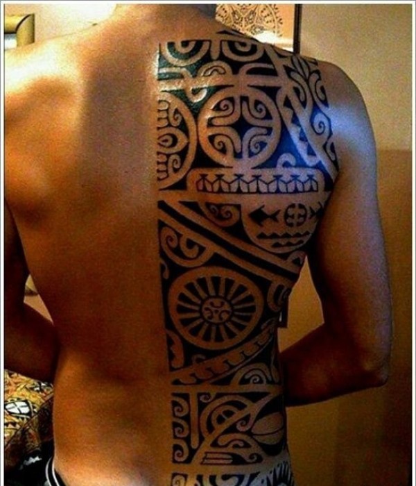 男性背部帅气的部落图腾纹身图案