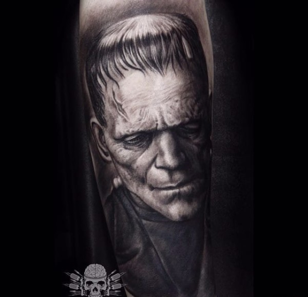 男人大臂黑白彼岸花骷髅_黑白纹身图案大全_纹身图吧