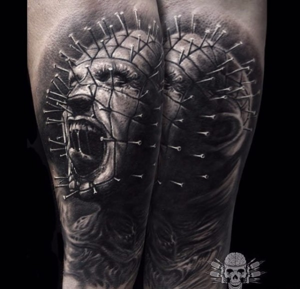 男人大臂黑白彼岸花骷髅_黑白纹身图案大全_纹身图吧