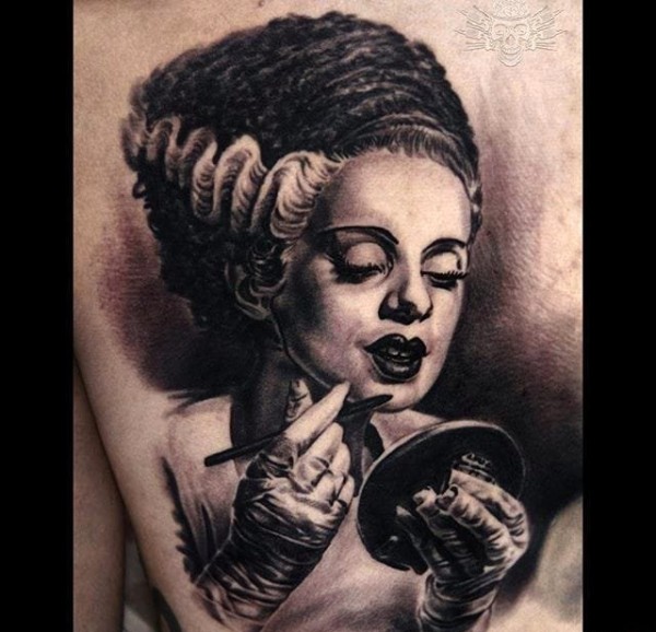女生后腰纹身黑白灰风格抽象线条纹身图案