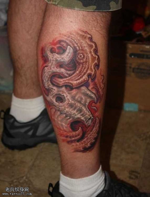 腿部彩生化纹身图案