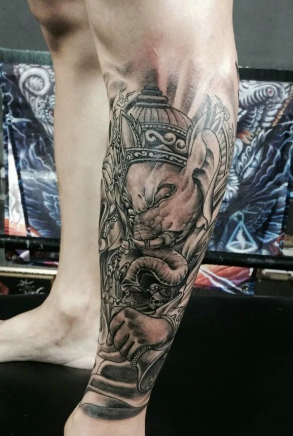 小腿上一款大象纹身图案_腿部纹身图案大全_纹身图吧