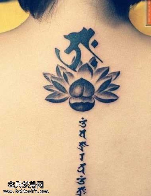 背部莲梵纹身图案