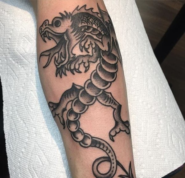 龙纹身手稿_一组老传统黑灰龙手稿纹身图案