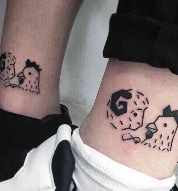 裸脚一对可爱的点状图腾情侣纹身刺青