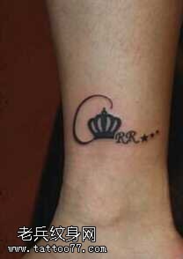 腿部小黑皇冠纹身图案
