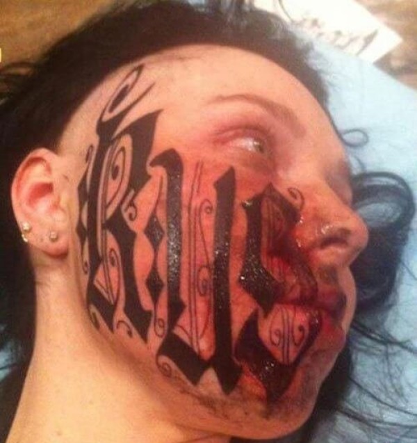 面部个性纹身花体英文字脸部传统风格纹身图案
