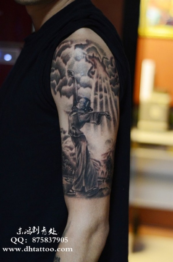 西安纹身店 黑灰大臂纹身 - 黑灰