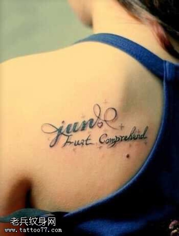 肩部很个性英文纹身图案