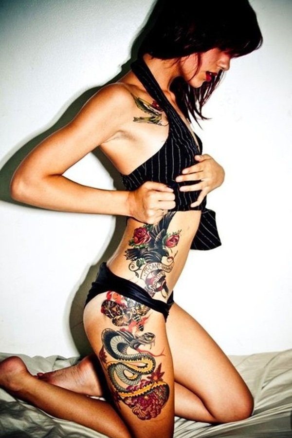 传统花腿纹身--18张传统风格的大花腿纹身图案作品