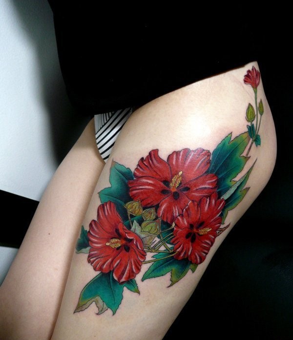 传统花腿纹身--18张传统风格的大花腿纹身图案作品