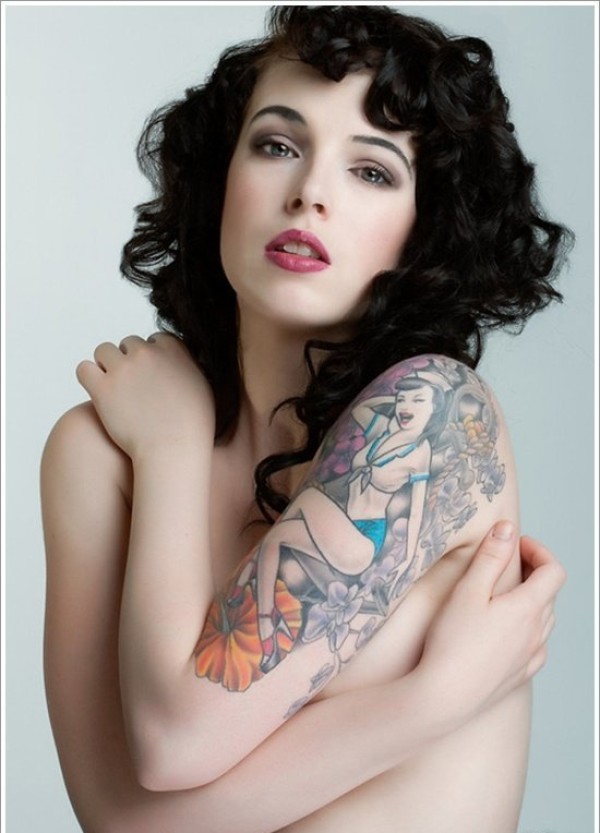 花臂满胸纹身女郎图案