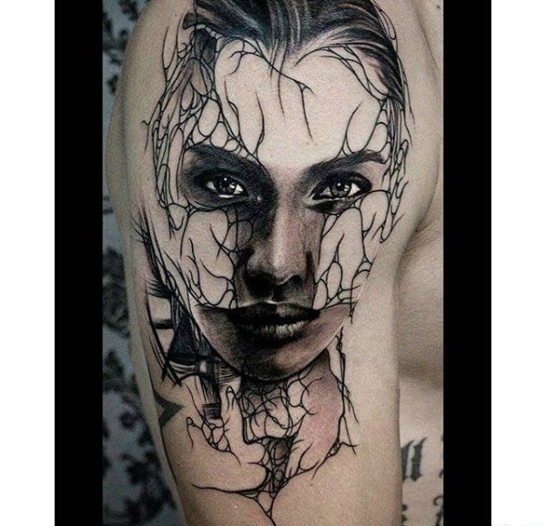 女性肩部肖像刺青_肖像纹身图案大全_纹身图吧