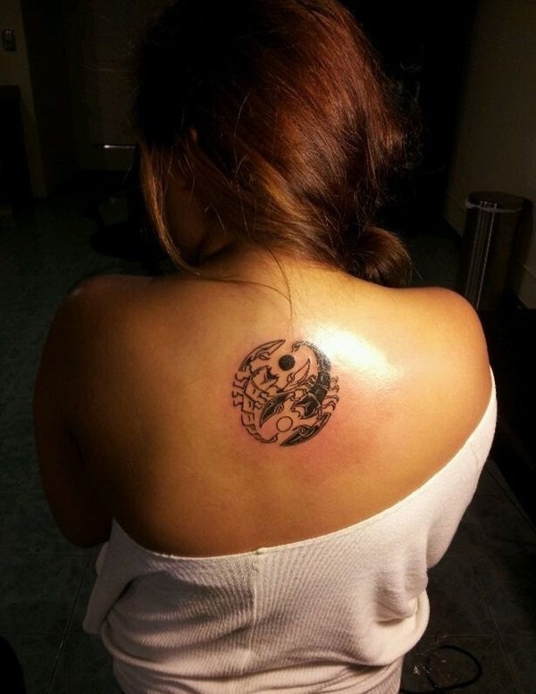 背上黑白阴阳八卦二仪吉它纹身图案