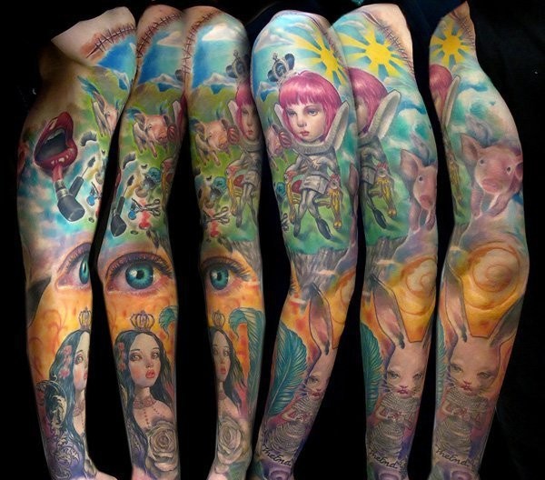 手臂一款彩色蘑菇纹身图案_臂部纹身图案大全_纹身图吧