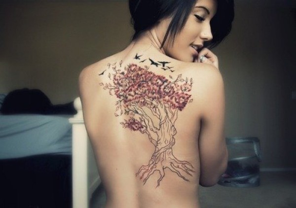 性感女生满背创意文身作品