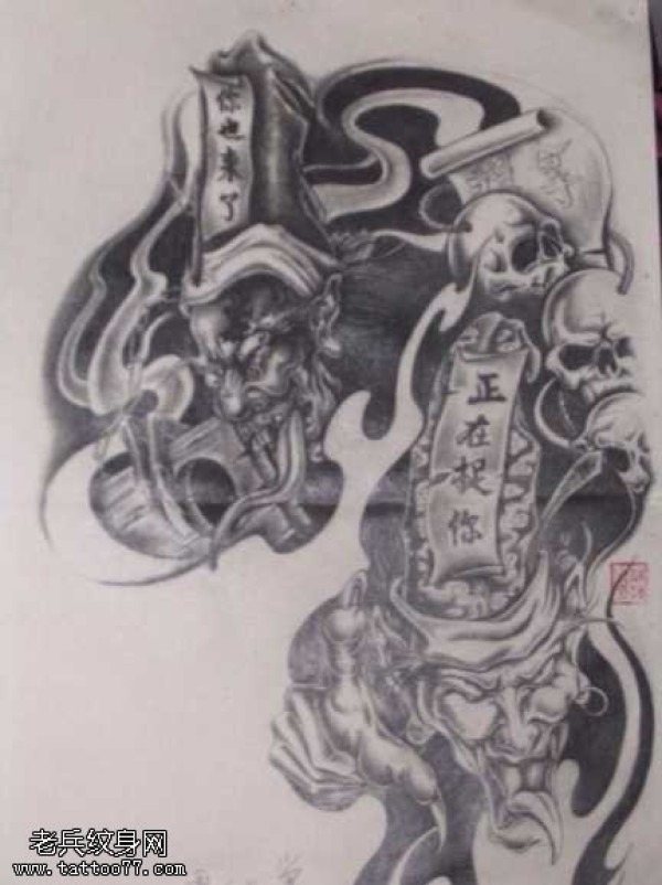 能面万媚纹身手稿_52张日式能剧面具纹身手稿图案素材欣赏