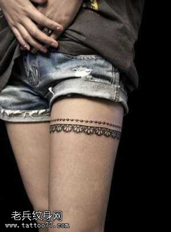 腿部小蕾丝纹身图案