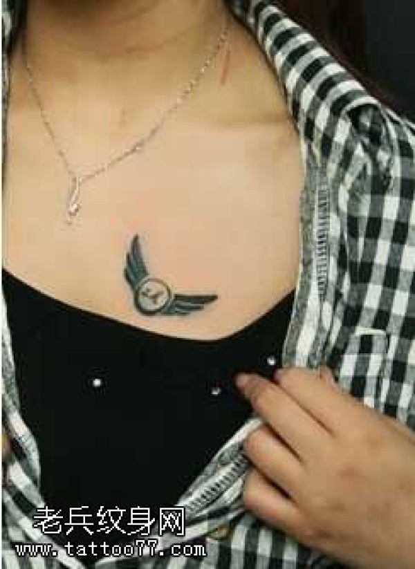 胸部爱心翅膀纹身图案
