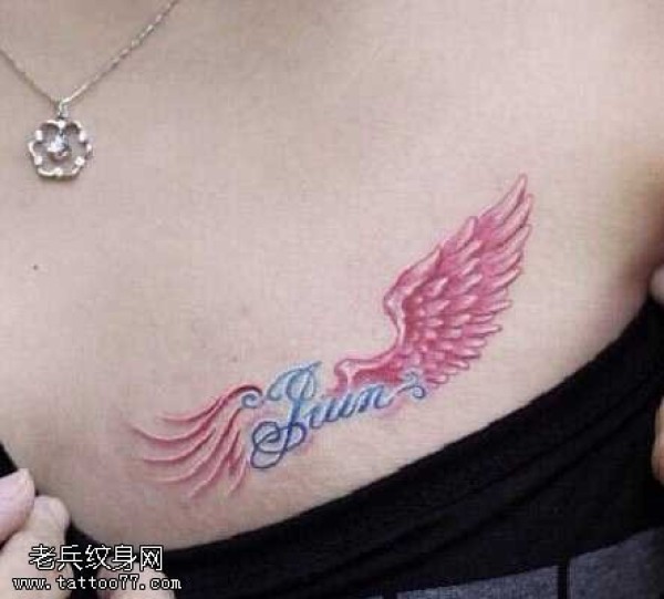 胸部红翅膀纹身图案
