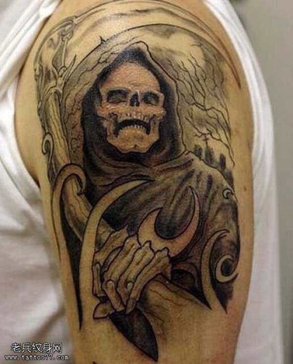 胳膊黑灰死神纹身图案