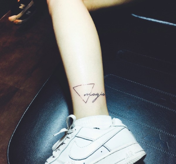 裸脚几何与英文一起的纹身刺青