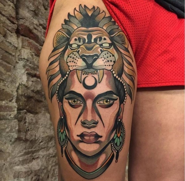传统花腿纹身--18张传统风格的大花腿纹身图案作品