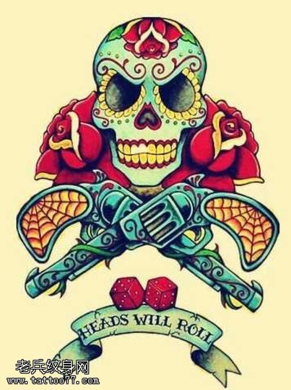 手稿骷髅手枪纹身图案
