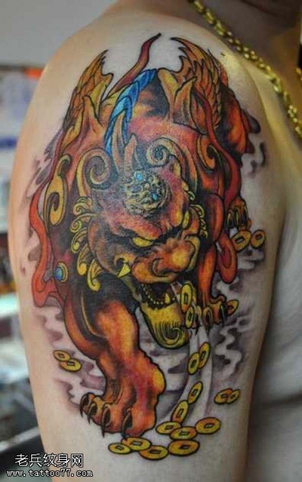 胳膊金钱麒麟纹身图案