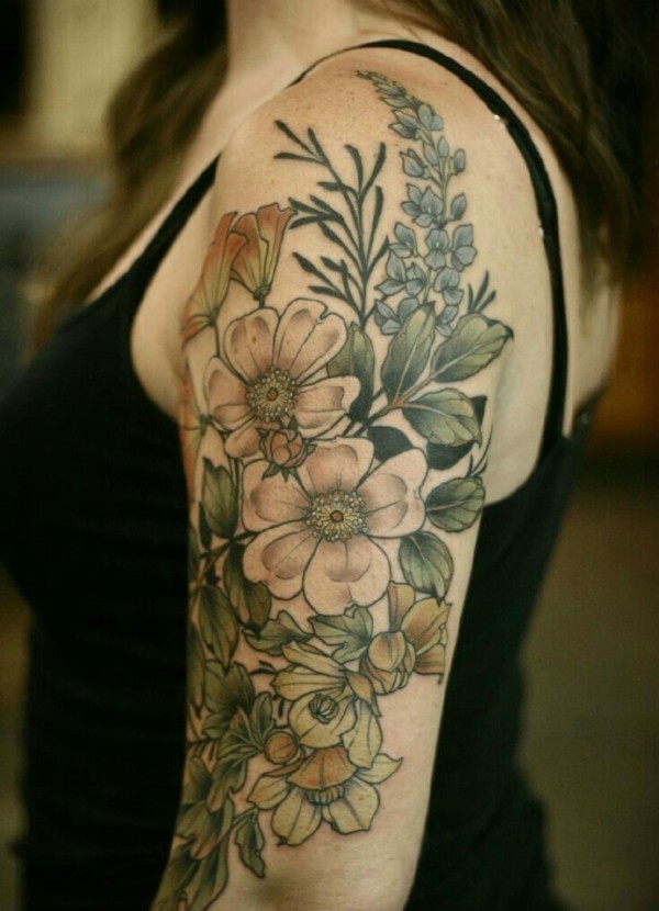 后肩唯美花藤英文图案图片_植物纹身图案大全_纹身图吧