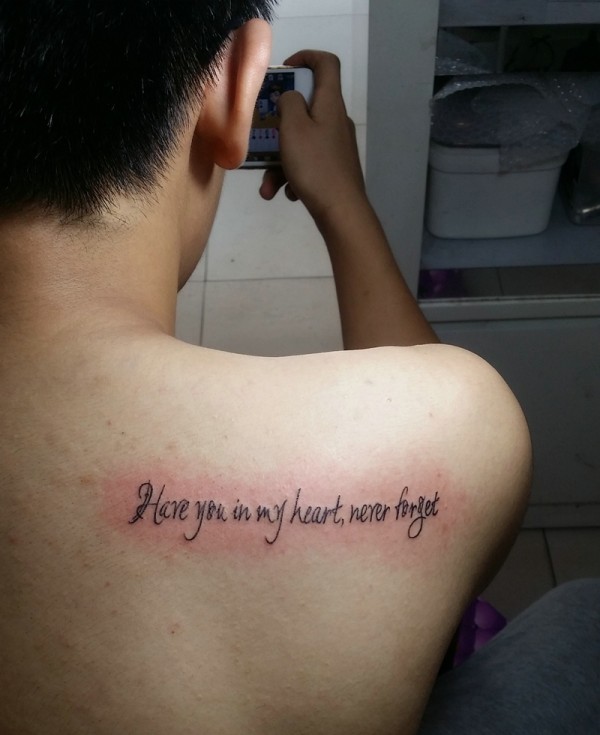 后背一条一字型的英文纹身图案