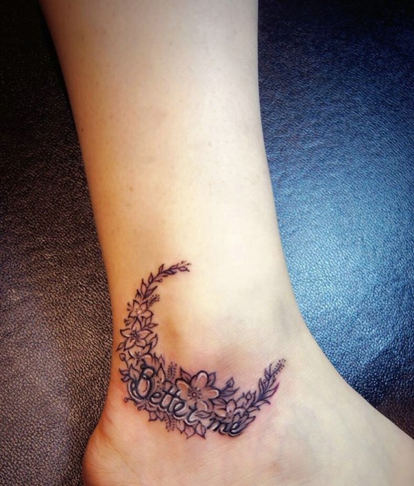 脚腕上类似于月亮形状的花环英文纹身