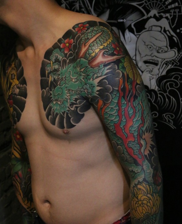 日式手彫刺青作品—半甲龙很感谢客户认可手彫刺青,手彫是日本纹身的手工雕刻技术,时间可以追溯到日本17世纪的江户时代。19世纪,手彫技术被日本黑帮挪用,被用作入会仪式,象征着从此就是江湖中人。在日式传统