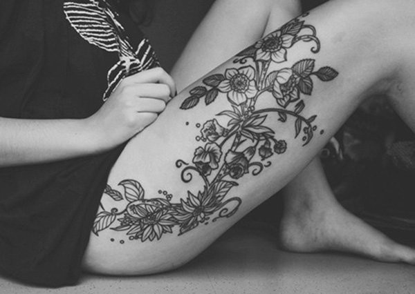 女孩腿部唯美刺青_腿部纹身图案大全_纹身图吧