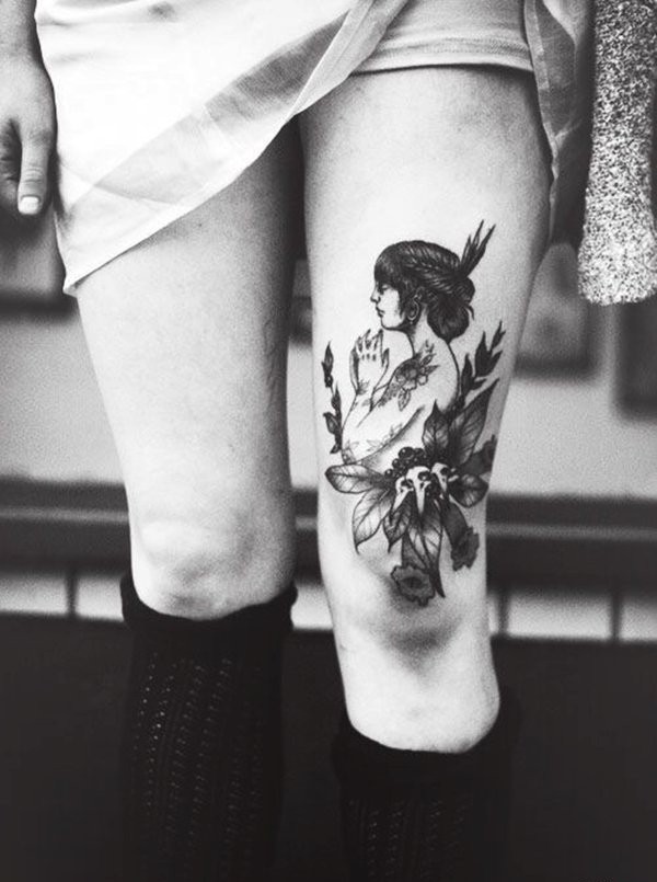 传统花腿纹身--18张传统风格的大花腿纹身图案作品