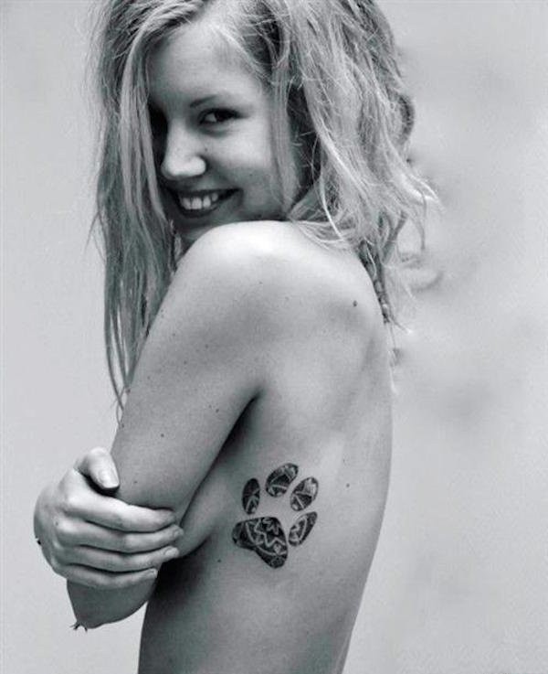 女生后腰纹身黑白灰风格抽象线条纹身图案