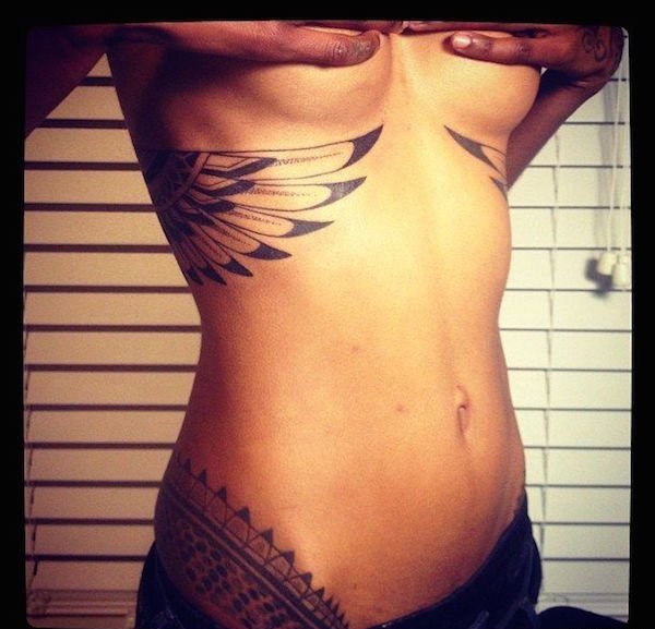 分享一款腰部时尚性感的蝶恋花纹身图案_腰部纹身图案大全_纹身图吧