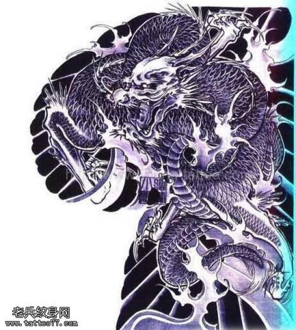 龙纹身手稿_一组老传统黑灰龙手稿纹身图案