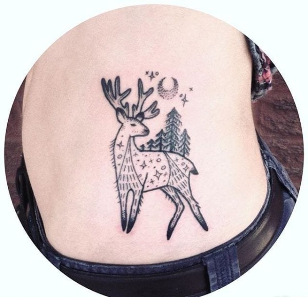 女生后腰纹身黑白灰风格抽象线条纹身图案