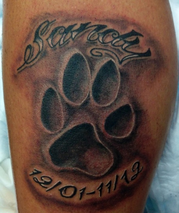 大腿上的刻字和猫脚印图案纹身