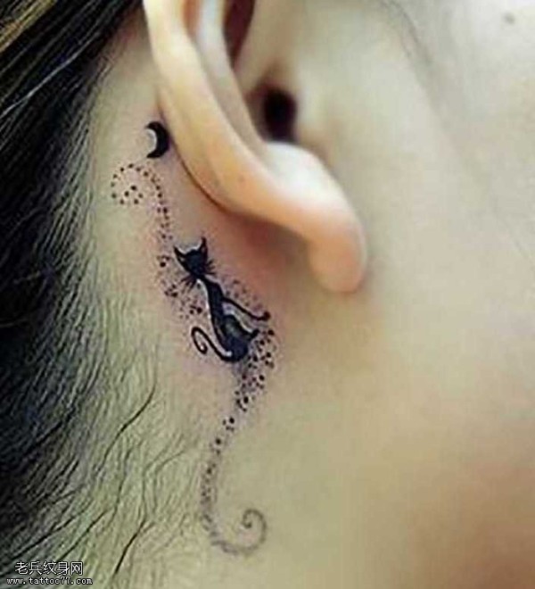 多款女生耳后黑色线条素描文艺小清新小图案纹身图案