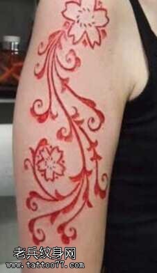 胳膊红瞎肉花藤纹身图案