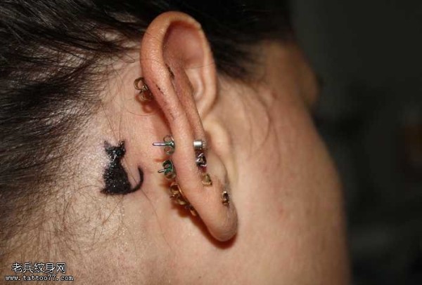 多款女生耳后黑色线条素描文艺小清新小图案纹身图案